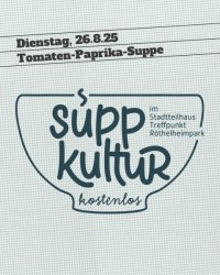 Unter dem Motto „international – sozial – gemeinsam“ startet am Dienstag, 15.04.25 zum ersten Mal die „SuppKultur“.Herbert Elsner, Initiator und Koch, wird einmal in der Woche immer am Dienstag von 12.00 bis 13.30 Uhr im Stadtteilhaus Treffpunkt Röthelheimpark, Schenkstr. 111 eine Suppe oder Eintopf anbieten, die dann auf Spendenbasis an die Besucherinnen und Besucher des Stadtteilhauses ausgeben werden.